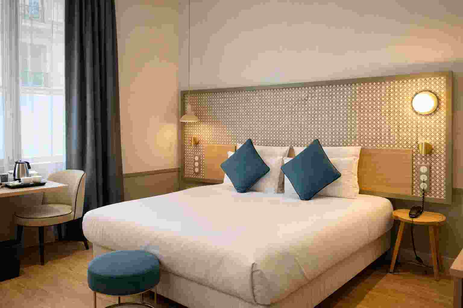 Chambre Double Premium Taille 17 m² Taille de lit 1 lit Queen Size Capacité 2 personnes En Savoir Plus Moins RÉSERVEZ Petit-Déjeuner en chambre (en supplément) Sèche-cheveux Salle de bain avec douche ou baignoire Cable channels Bureau Plateau d’accueil Wifi Gratuit Coffre-fort Découvrez tous les services de l'hôtel